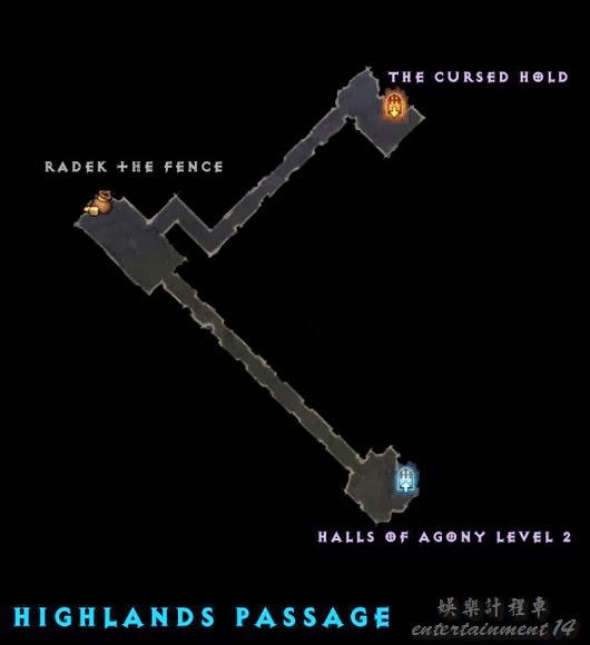 做一個可以直達高地狹道的傳送門。如果沒有傳送門,找到痛苦大廳2層的傳送點然後退出。當你看到檢查點的時候,遊戲會保存,如果你不找拉德克,就離開遊戲。這時這應該會有個城鎮傳送門能把你到高地狹道的檢查點。他出售:
