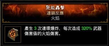 首選連鎖反映,詳細分析請參閱2樓。這裡對之前壇友的帖子做一些修正,他認為分情況選用迅爆和連環,因為連環有前置時間。可是他是以見怪後按技能為前提,忽略了此技能連按後保持身上爆炸的效果,將產生類似DPS的一種秒傷演算法,這部分在後面有詳細介紹。