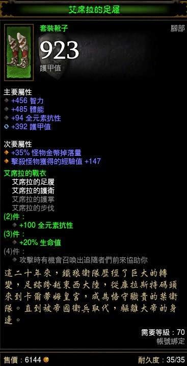 頭盔項鍊和副手如果湊齊塔拉夏套的話,將會達成全身4套套裝屬性的效果,目前許願中。