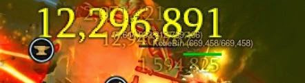 武僧不斷吸怪控怪,幽光刃幾下就疊加了90多層,炸彈寶寶飄出了1800W+的黃字,當時我都震驚了,不要忘記炸彈寶寶的攻擊頻率是4次/秒,如果不是親自體會,不會知道臉上黃字飄的有多快。