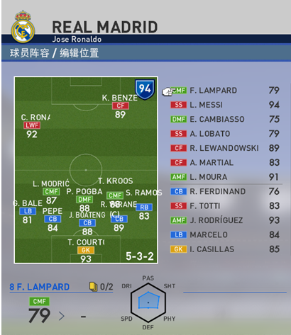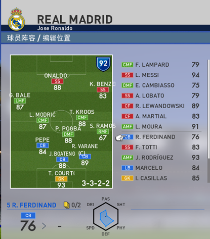 開始的幾天第一賽季,我碰到了國家隊歸來的馬德里德比,經歷了無狀態的國家德比,經歷過可能電腦爆紅的國家德比。。面對著馬競的瘋鏟+各種過頂,面對著巴薩的msn各種亂跑。我也迷茫過,我屮艸芔茻這怎麼踢啊,之前13集大成的334陣型我已經接近質疑的邊緣,一度想放棄3中衛體系,打433,在防線上再加一個人,因為我也面對過3中衛湊不齊的情況,所以我也有一套433陣型。但是堅信三中衛體系的我,決定拆掉334的一邊,也就是將一邊的邊路和中鋒撤掉,也就是把花一億買了個左後衛的梗。。。拉莫斯去邊後衛吧,既然準備玩極致大巴防反就不需要上搶中後衛了,拉莫斯去打邊後衛好了,利用身體下底。於是我搞出了這個左右不對稱的陣型,所有進攻都是從邊後衛開始,就是簡單粗暴3套戰術不斷嘗試。