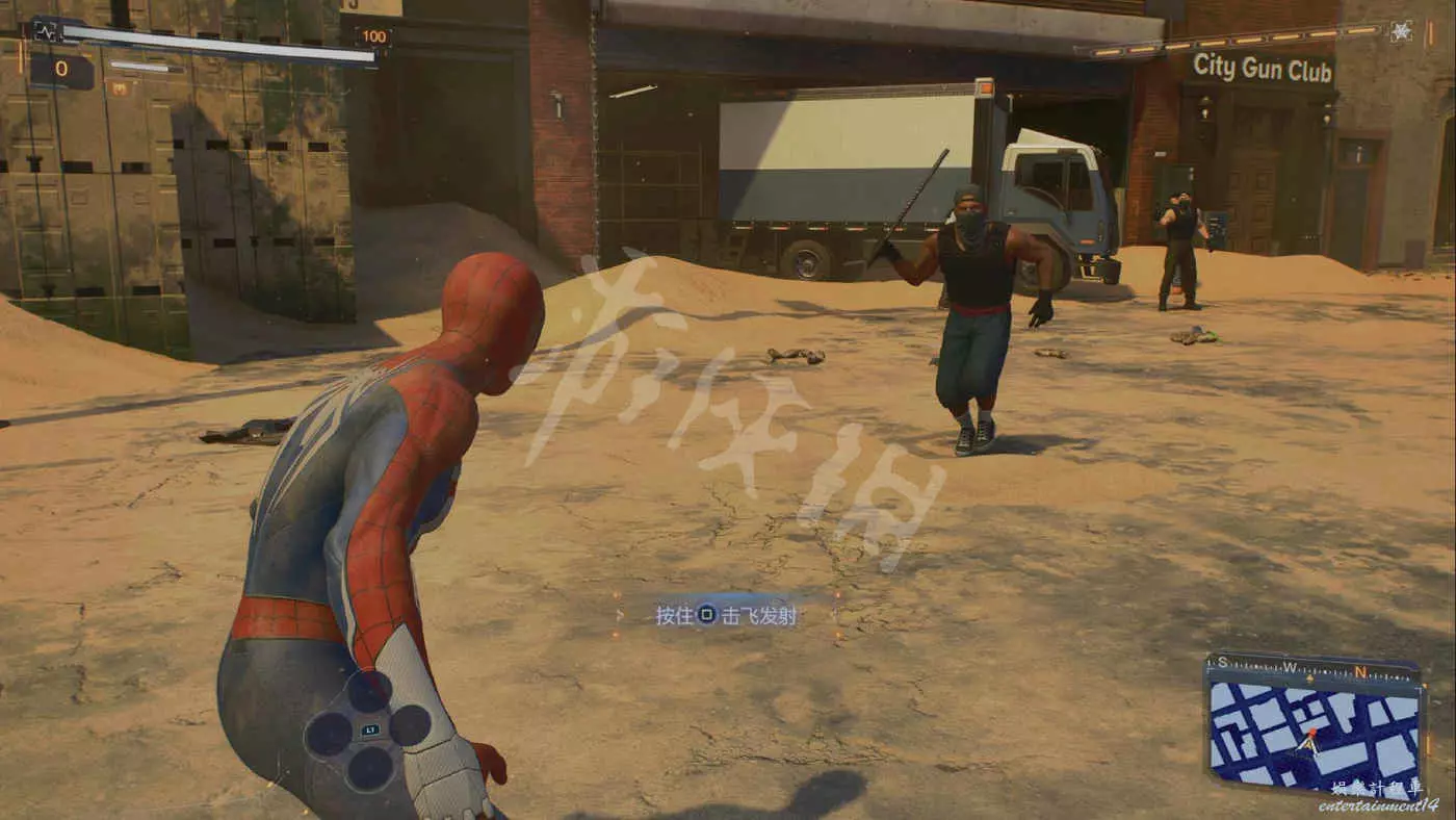 反覆使用蛛絲致盲快速打擊沙人等待派克投擲水桶。