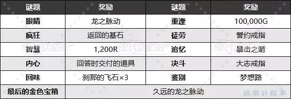 ※注意在解答最後一個謎題之前,確保將自己的職業更換為弓箭手或魔弓手,並且已經打開寶箱獲得了【暴擊之箭】,否則會漏掉黃金寶箱的鑰匙。