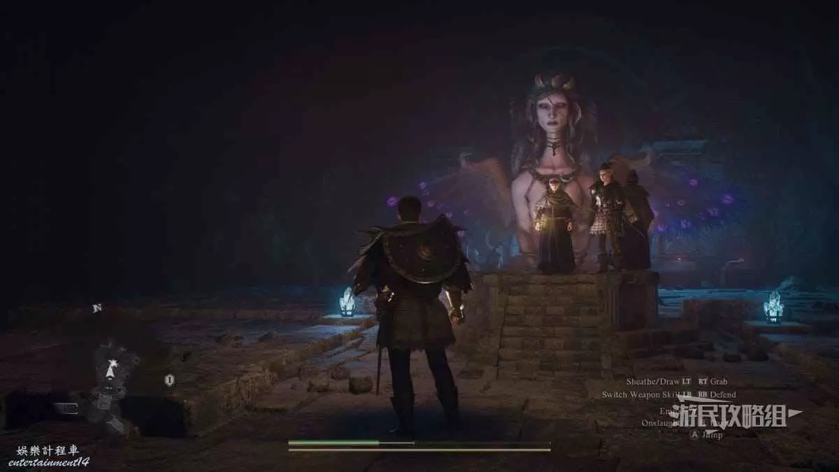 如果真的有想要帶來的NPC,可以用之前眼睛謎題中拿到的封印小瓶或者在扛起NPC的狀態下使用刹那飛石快速把NPC帶回來。封印小瓶可以把NPC裝進小瓶子裡,靠近斯芬克斯所在基座時再次使用就能把NPC放出來。