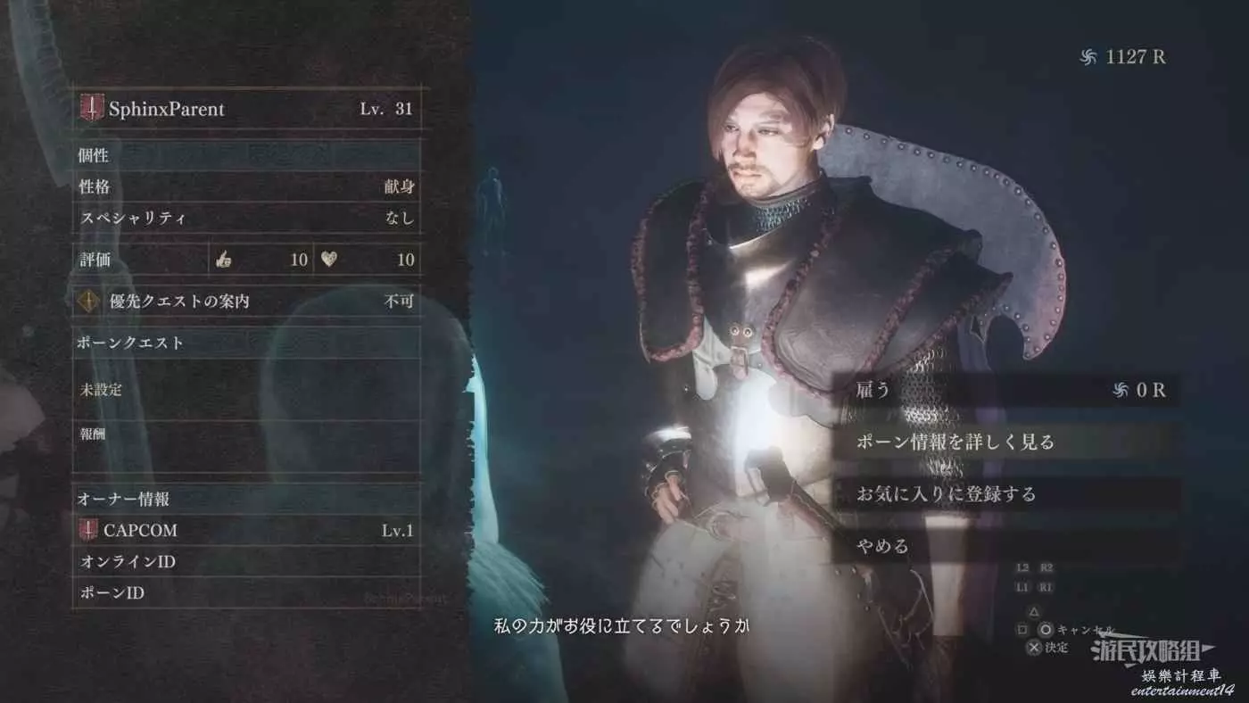 隨便扛一個在旁邊的追隨者到斯芬克斯所在基座上即可正確解答。我們試過用主要追隨者、看起來友好度比較高的NPC和從來沒有交談過的NPC,都能正確解答,並且基座附近可以放很多人,但獎勵不變。所以最簡單的方法就是選擇主要追隨者,沒有特別的需求就選他吧。