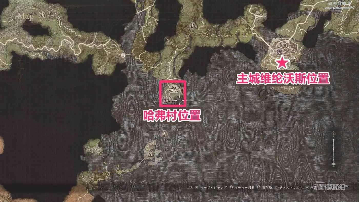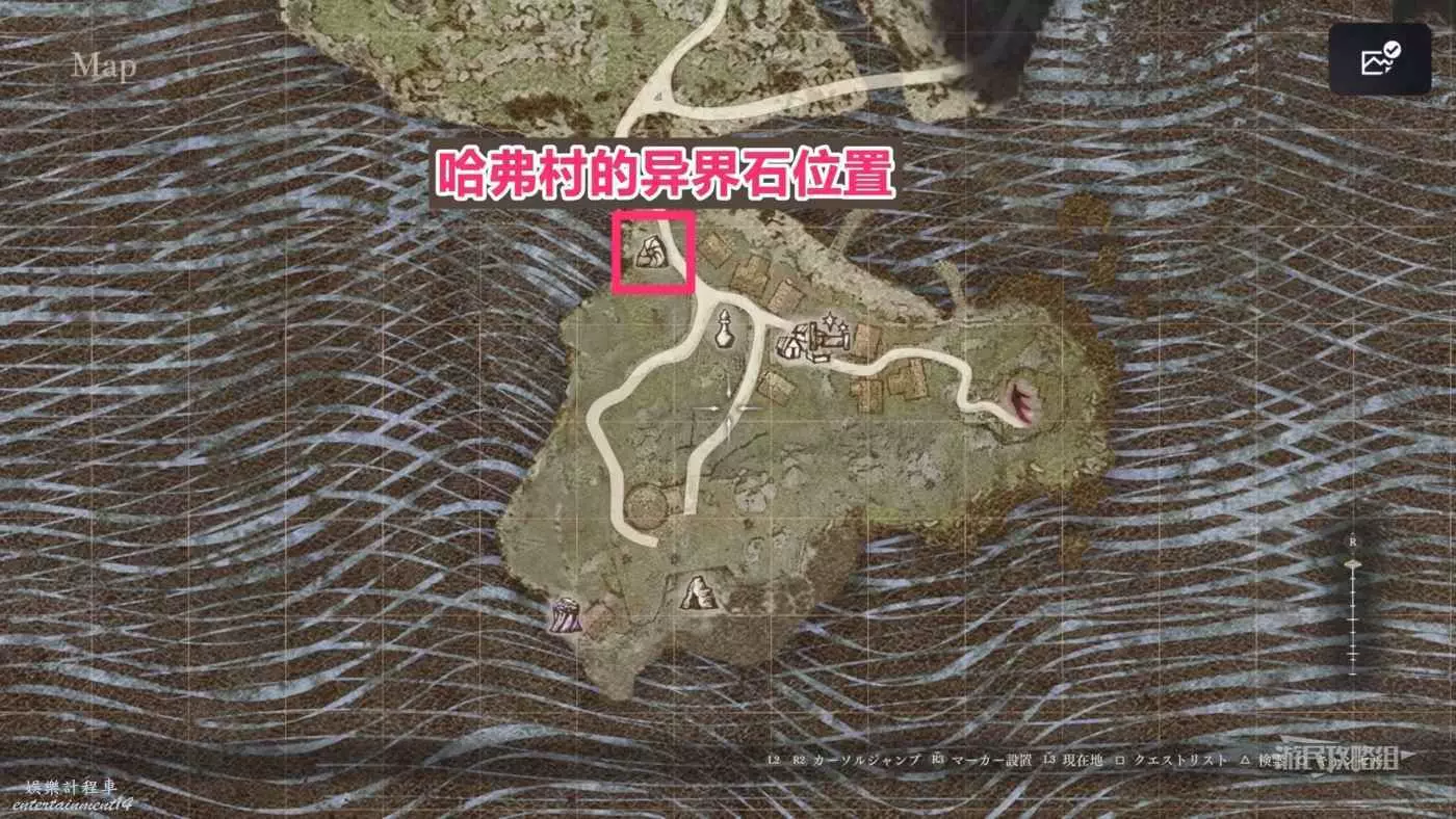 除了維綸沃斯的中央異界石之外,還有一些能選出特殊昵稱的追隨者的異界石,例如哈弗村的異界石。但是所有的異界石都可以召喚出能正確解謎的追隨者,也不用特定去找。下方地圖指示為哈弗村和哈弗村的異界石位置: