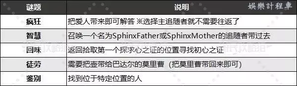 需要返回你第一次拾取探求心之證的位置,找到「初心之證」,然後返回斯芬克斯所在位置提交「初心之證」即可正確解謎。
