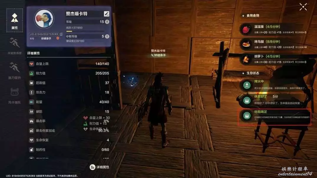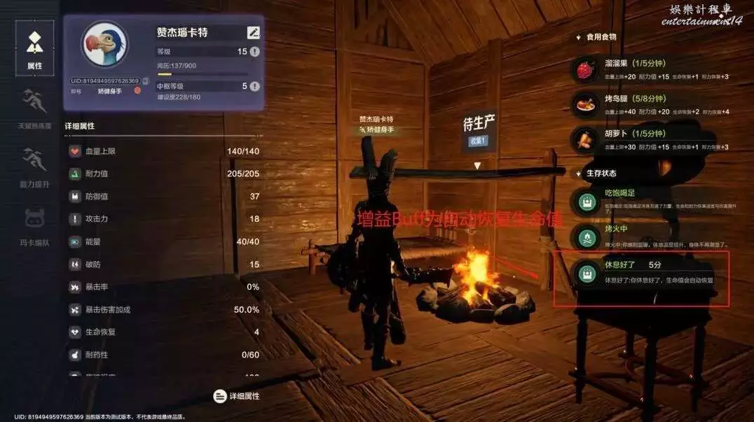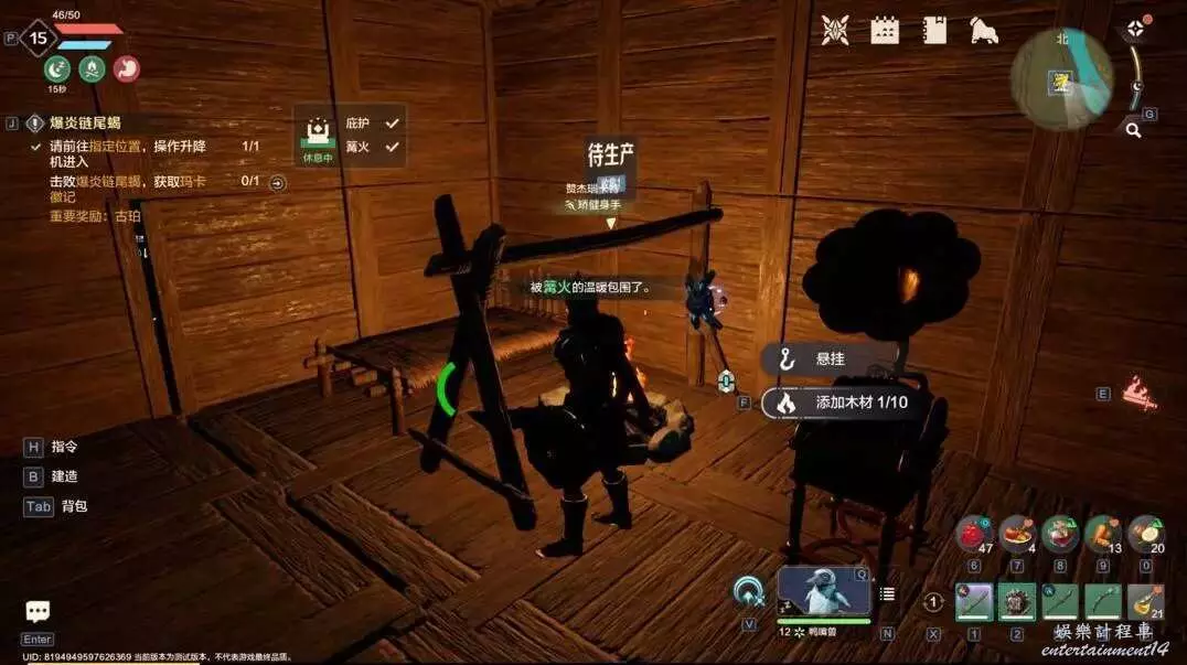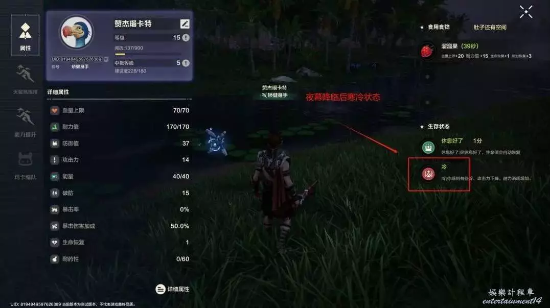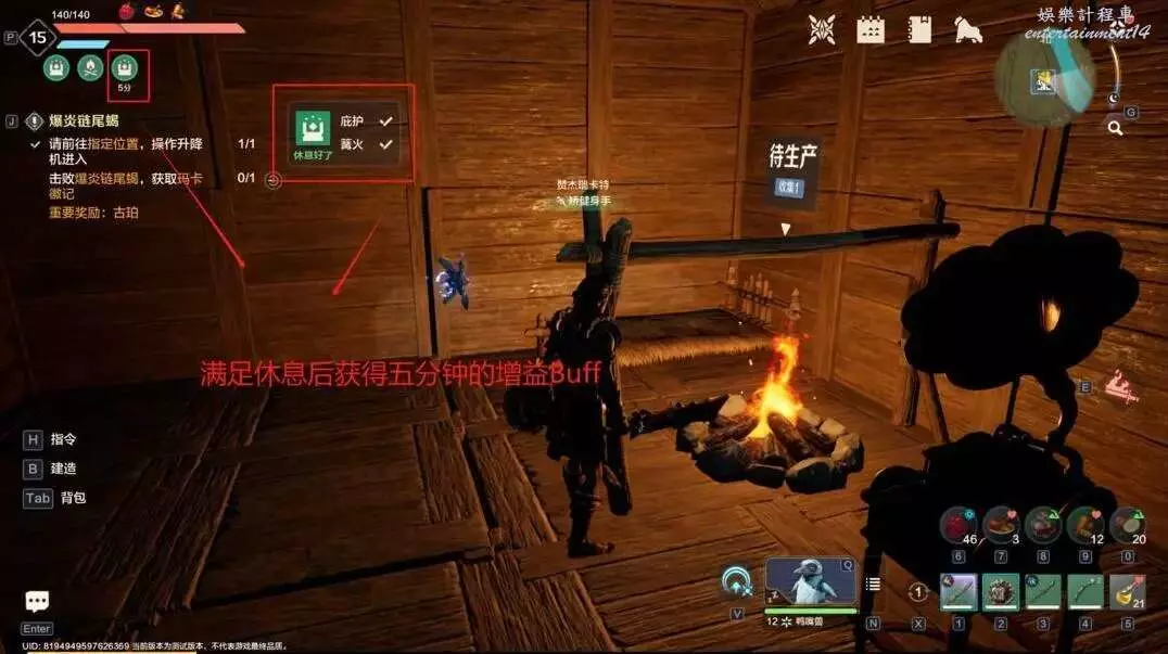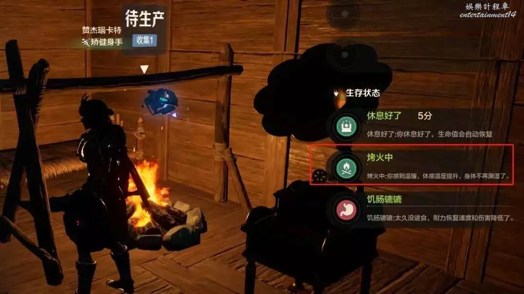 寒冷和潮濕狀態則需要到篝火附近點燃篝火消除。下雨時,篝火需要在屋頂下方才能點燃。
