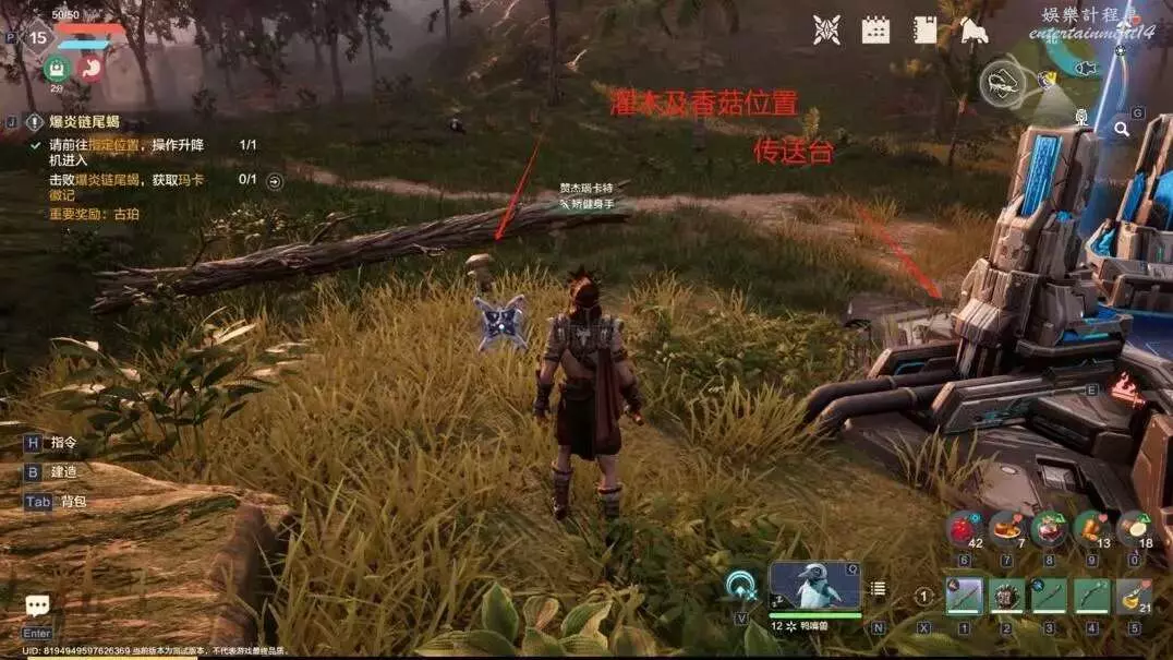 拓荒者們在開荒時會發現香菇這種食材經常會出現稀缺的情況,但是又不知道如何快速獲取。這裡各位拓荒者在平時跑圖的時候就要注意了,野外經常可見有倒地的枯木,只要發現請不要猶豫,立馬上前採集,必然會有一堆香菇在周圍。最常見也是最方便的固定刷新點就是地圖上炎火傳送台旁邊就是一個倒地的灌木,拓荒者們可以打開地圖進行新增標記,方便下次採集。