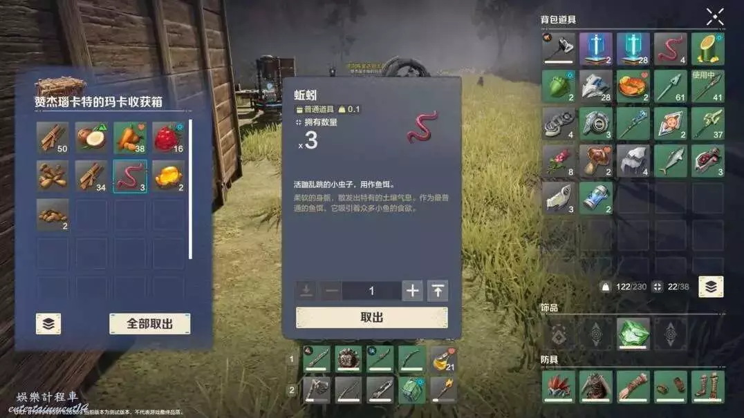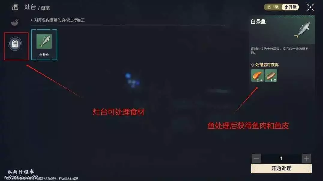 解鎖了魚竿後就可以帶上餌料去釣魚了,餌料蚯蚓可通過家園種植後的收穫幾率獲得。魚經過灶台的處理就可以加工成香煎魚這道可食用的食材。