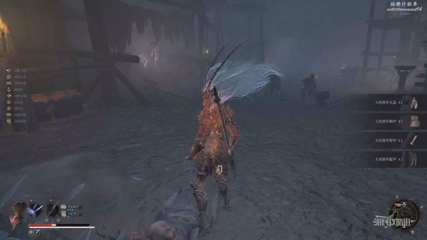 繼續往前走,快到敲鑼怪的位置時會看到一隻紅眼士兵,擊殺紅眼士兵即可獲得大西督軍防具。