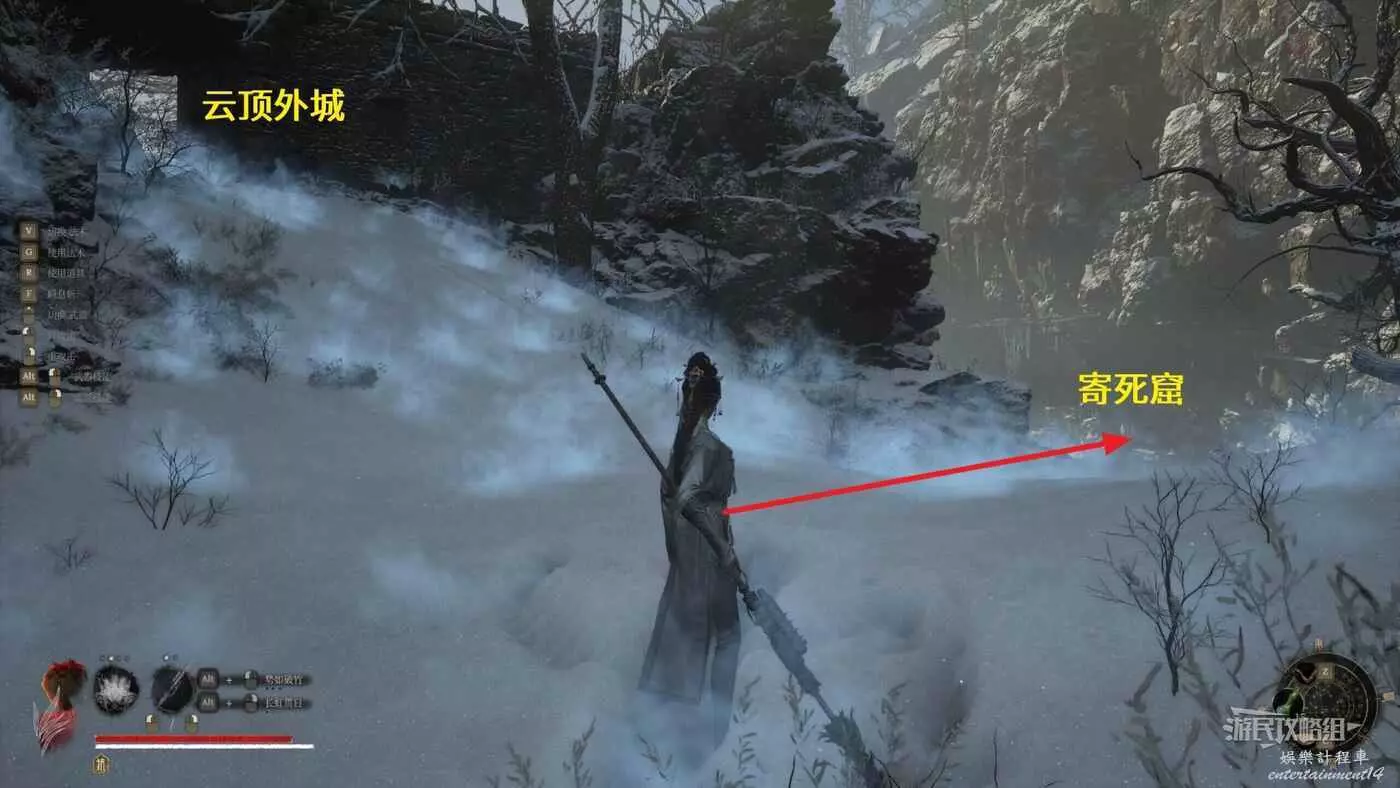 走到岔路口往右邊的寄死窟方向走。