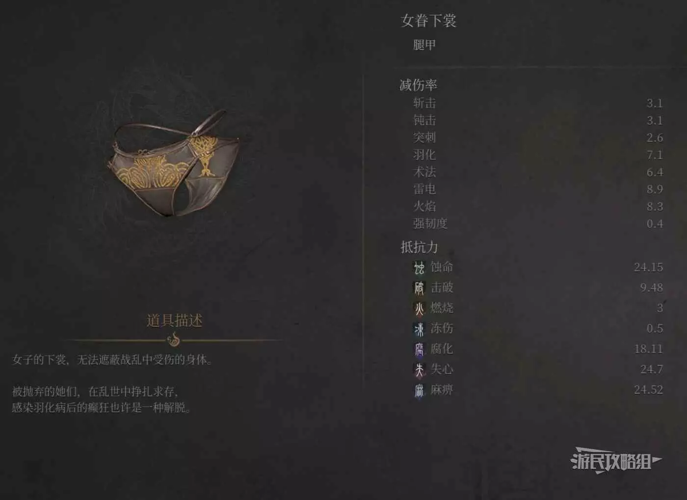 可以看到一個死去的女眷,拾取獲得女眷套裝。