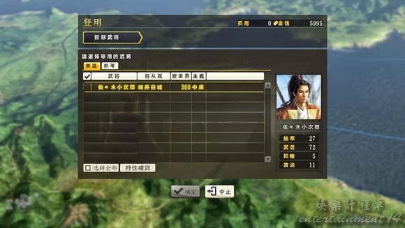 因為兵不多,也就帶了2000意思意思,因為有個自訂武將是100統帥100武力的相當於作弊器的存在,另外派出的就是【佐佐木小次郎】~