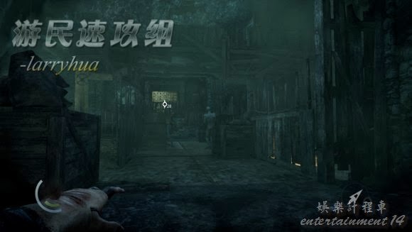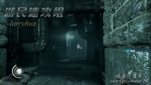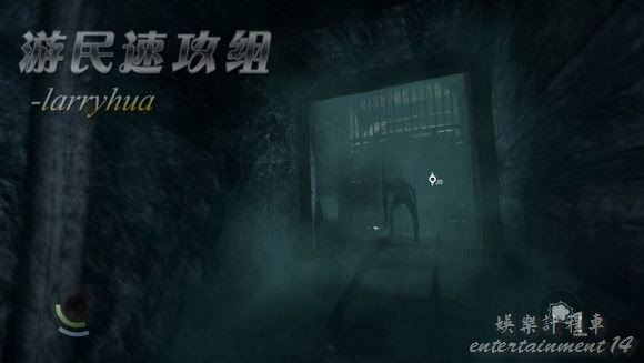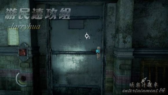之後我們從左邊的路繼續前進,利用干擾物引開守在病房前的兩隻怪物,迅速鑽進狹縫中.