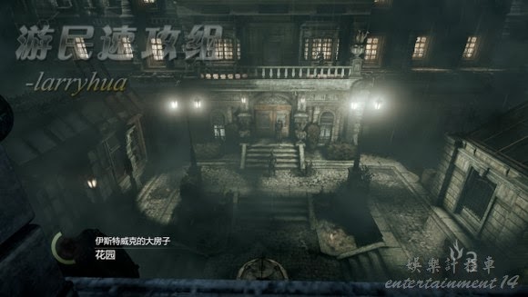 在後院會發現幾個守著入口的警衛,我們只需要在靠近我們這邊的圍欄直接跳下去即可.