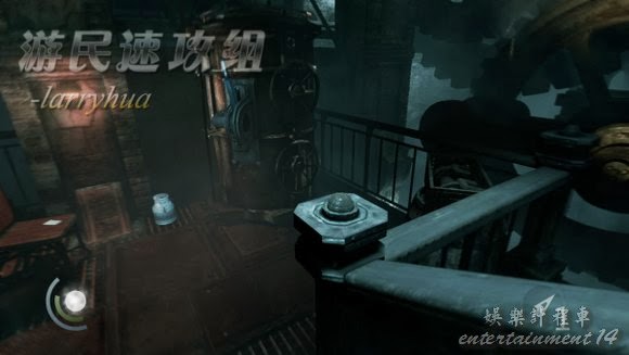 上去夾層之後跳過夾層的空隙利用鐵網爬上窗戶進入下一個場景.在裡面扭動開關開門進入圓形大廳.