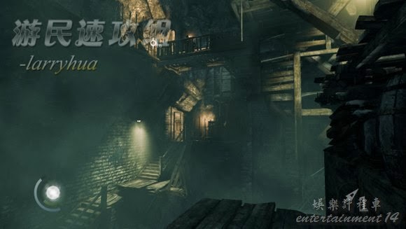 不久之後小夥伴便拋棄了我們,自己用工具爬上屋頂了,我們則要小心得避開視線與光線一邊搜刮一邊前進.