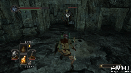 6.出來爬梯子上二樓,面前轉彎處的第九個機關,是打開下面密道石門的機關。跳下去沿著走道上坡,可以看到一個寶箱,裡面是兩塊強化武器的石頭,值不值得用一個法洛斯之石大夥自個掂量。