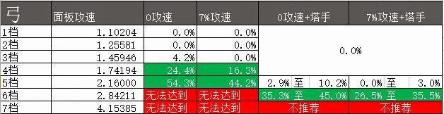 結論1:綜上可以看出2.0.6的王牌組合集束箭+多重箭的組合對於攻速收益幾乎為零,6檔、7檔收益還行,但是除了弩槍有望衝破這兩個檔位元外,其他都需要逆天的攻速。