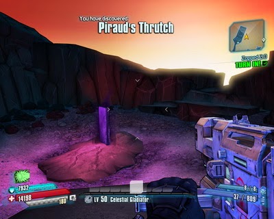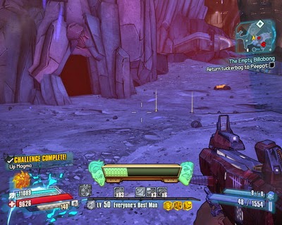 出來後接門口的“BOOMSHAKALAKA”(大名鼎鼎的籃球任務1,這個名字可以用來當RAP了……),在找球的時候可以順便啟動“Treasures of ECHO Madre”(特殊!)任務,問一下旁邊如廁完畢的侏儒強盜“Timber Logwood”藏寶圖的消息!然後繼續籃球任務,完成後繼續接“Space Slam”(太空灌籃!這不是一部電影的名稱嗎?)並完成之。然後繼續“Treasures of ECHO Madre”(特殊!)任務,殺掉魔蟲後獲得藏寶圖,進入了任務的後半段,因為這裡有特殊挑戰與物品掉落,建議先到Outland Canyon(外域峽谷)傳送點旁啟動自動保存,然後再退出或者進行下去……