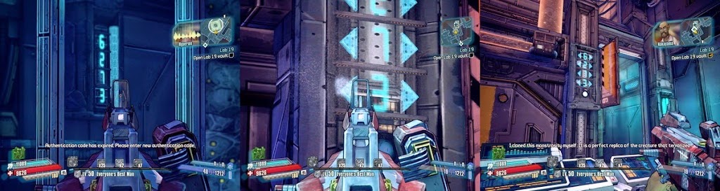 回Jack’s Office(傑克的辦公室)繼續前面任務,完成進程後回上一場景,啟動“Voice Over”(對話結束)任務,到達北區。順便可以完成Hot Head(頭腦發熱)任務。這兩個任務都完成後請切換回“Paint Job”(噴漆工作)任務摘取鮮花並繼續完成這個任務,之後可接“Kill Meg”任務(有!),按地圖指示去到任務點後先別按開啟垃圾房的開關,切換至“Boarding Party”任務,拾取第一個ECHO(Athena)!然後切換回之前任務,殺掉怪物後回Jack’s Office(傑克的辦公室)交已完成的任務,然後傳送回Hyperion Hub of Heroism(亥伯龍英雄殿、英雄中心)切換回“Boarding Party”擊落顯示幕,拾取第二個ECHO(Nisha),繼續任務。在拾取小吵鬧的ECHO時順便接“Cleanliness Uprising”任務。在去捕捉第二個清潔機器人的附近切換回“Boarding Party”,打開水道的暗門並拾取最後一個ECHO(Wilhelm)!