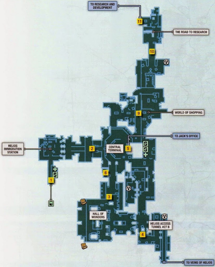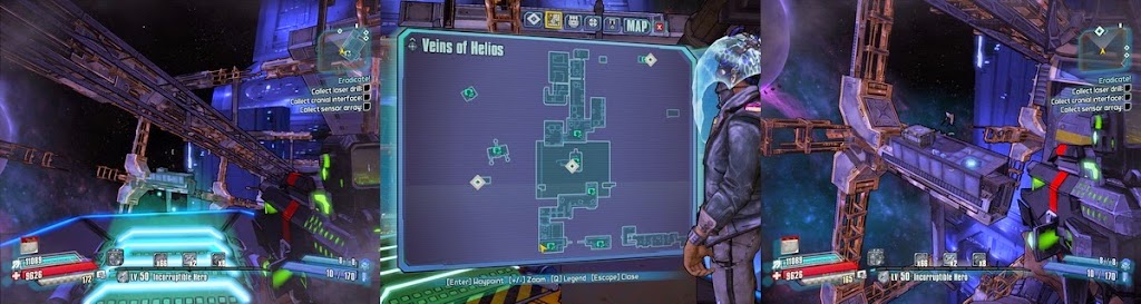 通關主線後回Jack’s Office(傑克的辦公室)交任務,接一大堆任務,都是集中在Hyperion Hub of Heroism(亥伯龍英雄殿、英雄中心)、Veins of Helios(赫利俄斯山脈)、Research & Development(研發部)這幾個場景中的。
