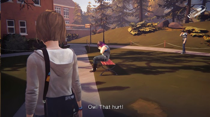 第七張照片也是需要對話後才能觸發,一開始我們就會看到男同學憤怒的丟出了手中的橄欖球,然後砸到了椅子上上的女同學
