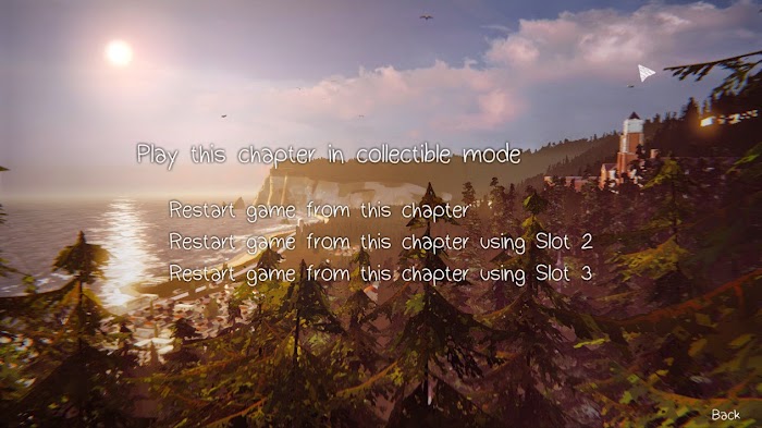 PS:如果你在通關完劇情後收集這些東西,一定要按“play this chapter in collectible mode”。不然你的劇情選擇將被更改