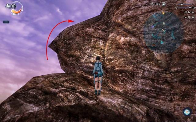 面對那道高崖的巨石,由帳篷邊緣朝石壁的突臺上跳,沿著斜面順時針方向繞過去,注意要按住W鍵貼緊石壁,再不停的跳躍來保持不滑下去。