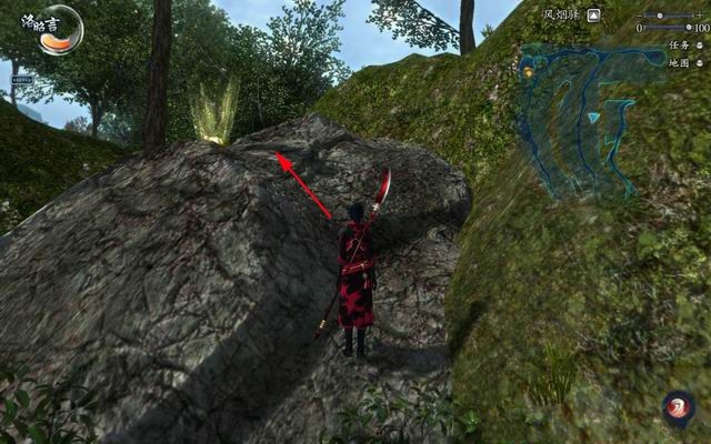 由樹右邊的石頭跳上去就可以調查了。【獲得軟星、提升洛家莊聲望值、臨風對月一】