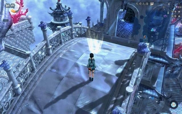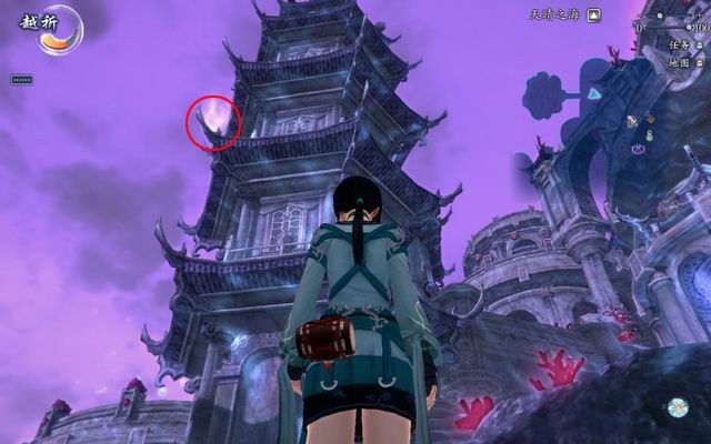或者找個平臺邊緣跳到虛空裡自殺,角色會重生在特定的天橋上面,望一側看那只亭子就在附近。