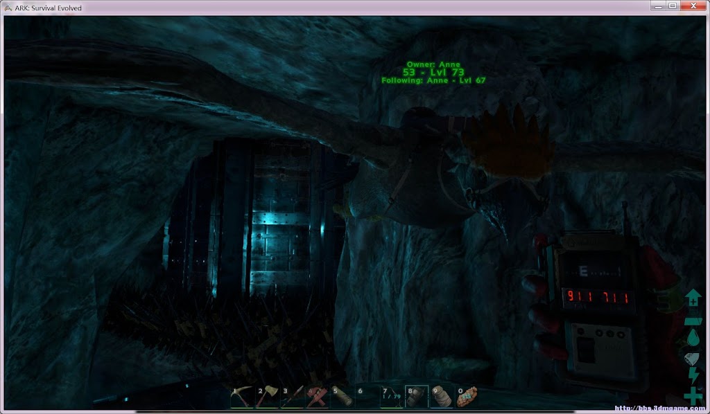 甲龍(神一樣的恐龍,中後期後勤工作全靠它。加點 主血和少量氧氣。別帶甲龍到礦山等遠離水的內陸)