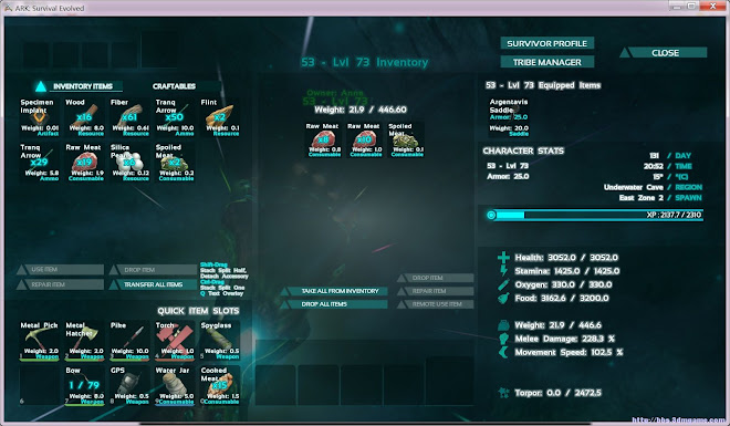 甲龍(神一樣的恐龍,中後期後勤工作全靠它。加點 主血和少量氧氣。別帶甲龍到礦山等遠離水的內陸)