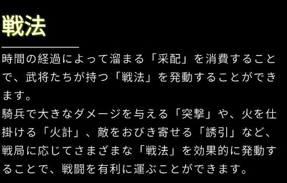 戦法は、必要な采配が溜まっている狀態であれば、任意のタイミングで発動可能。