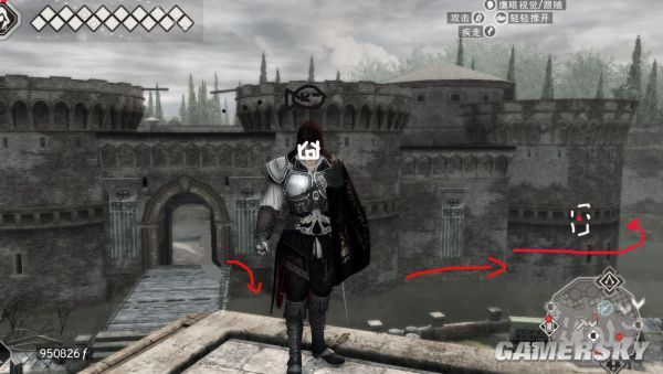 第五+六墓穴:威尼斯,同時擁有兩個墓穴!因此同時列出了兩個墓穴!左圖的墓穴比較簡單,就是在鳥瞰點(墓穴與鳥瞰點相疊)的塔往下望便是(二樓)!右圖的墓穴也不難,也是在建築物的二樓!此時主角站的位置就是建築物正門對面的鳥瞰點!如 果實在找不到,可以來到前門!再看右圖就可以了