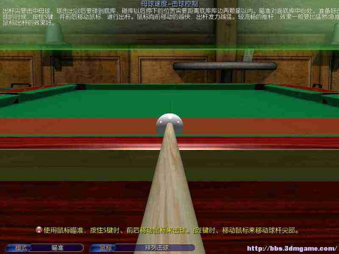 擊球:改變擊打母球是出杆的靈敏度倍數。如果你沒有對母球速度足夠的控制力,請降低靈敏度。如果in達不到擊球速度足夠的控制力,那請降低靈敏度。如果你達不到擊出預想速度需要的滑鼠移動速度來彌補。