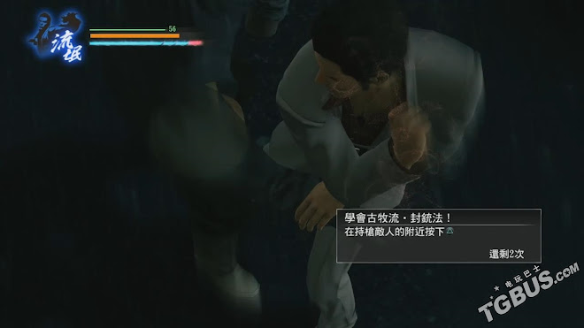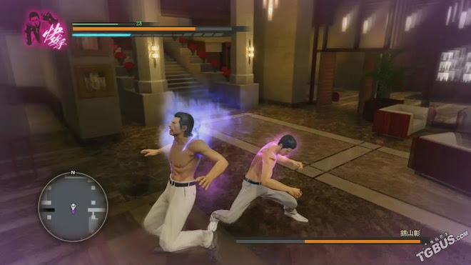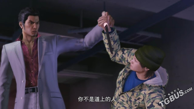 除了真島本次新系統外,這是兩人在劇情要求下的一次比較有意思的戰鬥。真島一上來就拿著刀,我們儘量多躲避他的進攻,贊好熱血槽準備好用流氓的超級精髓。途中有5次連續輸入指令的QTE一定要看好出現的按鍵。