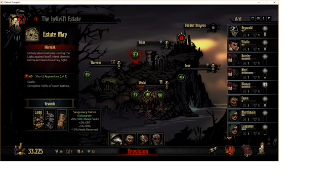 Darkest Dungeon\campaign\quest\quest.json裡存放了所有任務相關資訊,其中包括普通任務(清怪,探索類)的獎勵資訊。檔第3724行開始是普通任務的飾品獎勵表。其中定義了什麼級別和長度的普通任務會出現什麼樣的飾品。那麼修改方式就一目了然了。首先看一下這個表格,作者非常貼心的注釋了“ROWS are DIFFICULTY, COLs are QUEST LENGTH”。你這是怕我們不會修改嗎?!這個matrix如果是CS出身的話就很容易看懂。方括號裡的4個0(或1)代表任務長度,第一個數字是預留位置,後三個數字代表短,中和長。每個稀有度有7組包含0和1的方括號,代表難度從0到6。其中難度0,2和4也是預留位置,剩下的自然代表難度1,3,5和6。我修改成了任何長度和難度的任務都可以出現隱藏飾品。這種修改方式應該是非常接近原聲體驗了。