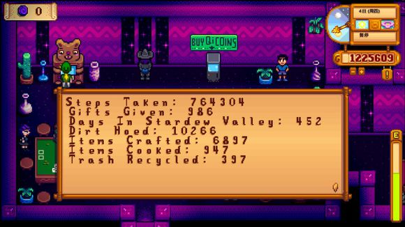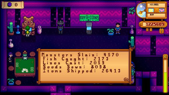 在賭場裡的機器上可以看到自己星露穀生涯的資料。