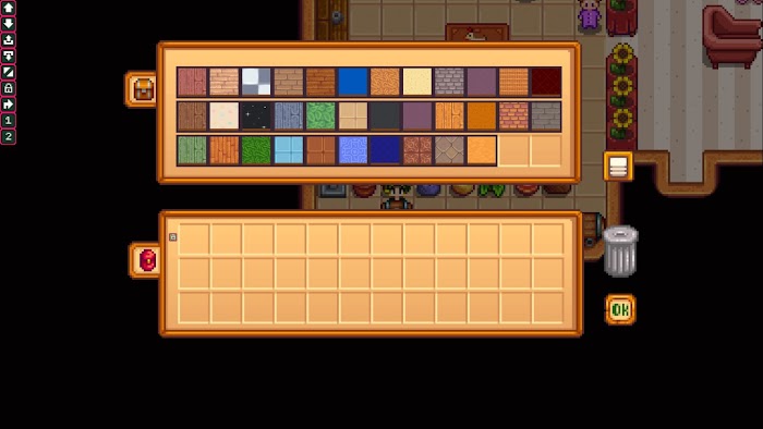 壁紙一共112種,我目前收集到約90種。地板比較少,一共40種,我買到的有35種。有些箱子裡沒有,被我用掉了沒有多存~