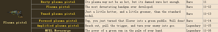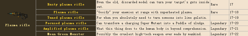 等離子步槍 傳說級別Focused plasma rifle傷害17-20 Amplified plasma rifle傷害17-21