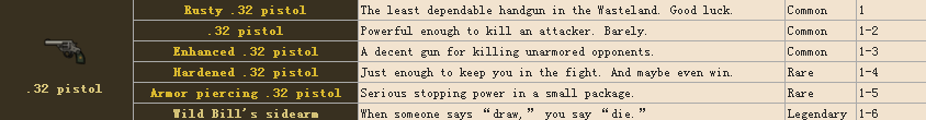 .32手槍 傳說級別Wild Bill’s sidearm傷害1-6