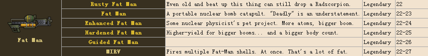 小胖子 全傳說。。。值得注意的是這些全傳說的武器多半是詞綴不同,小胖子還有一個MIRV多彈頭,聽起來好流弊的樣子,傷害22-27 全遊戲最高的