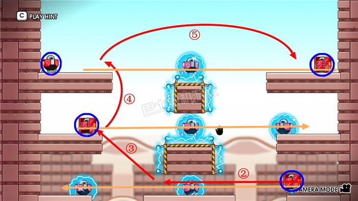 ⑤跳過中間的電流,近戰放倒最後一個敵人。