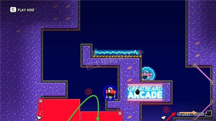 ④跳上左上方的小檯子,近戰解決掉上面的機器人;