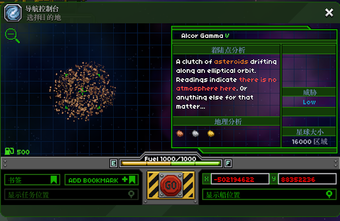 Asteroids,小行星帶。沒有空氣,引力小, 可以採集 金銀銅 3種礦產。 很多星系都能找到。