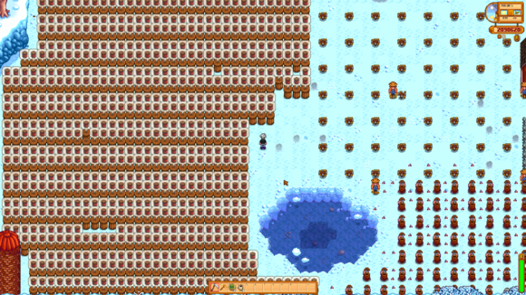 繼續,還是春天:下礦到80層以後,就一直刷礦了,81刷金41刷鐵。下雨也下礦,不要去釣魚王。決定你今後發展速度的,不是魚王,也不是總資產,而是中級灑水器的數量,也就是夏初能種多少地。前期最缺的其實是石英,每天根據運氣都能獲得一定數量,所以要多下礦。至於錢,只要攢下種子錢就夠了,獻祭之類的等下說。(樓主春天結束90個中級灑水器,夏天開始就是720塊地,400塊啤酒花,300藍莓)