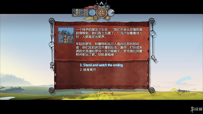 隊伍再次前行,偵察兵沖進來喊道石人比我們想像中的還要近很多,石人的速度很快,你意識到這將是一次死亡行軍,你決定讓不能作戰的呆在後面,不能讓他們成為行軍的累贅(這直接導致你的族人全部被捨棄,這點筆者也沒想到。