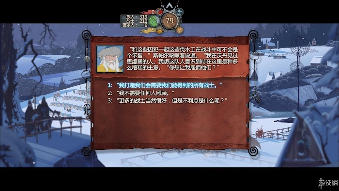 在隊伍離開的時候,你命令雇傭所有囚犯和伐木工,增加自己的戰鬥力量。筆者此處選擇回答1.